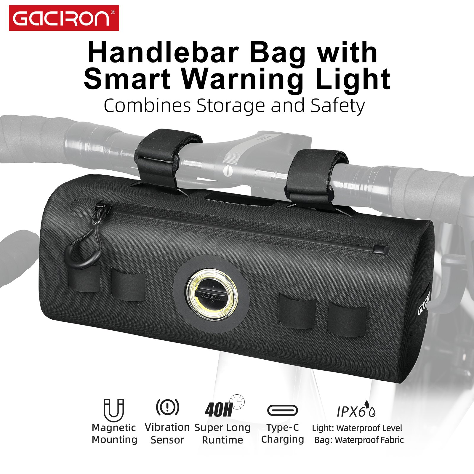 Brašna na řidítka s odnimatelným předním světlem a možností nabíjení typu C